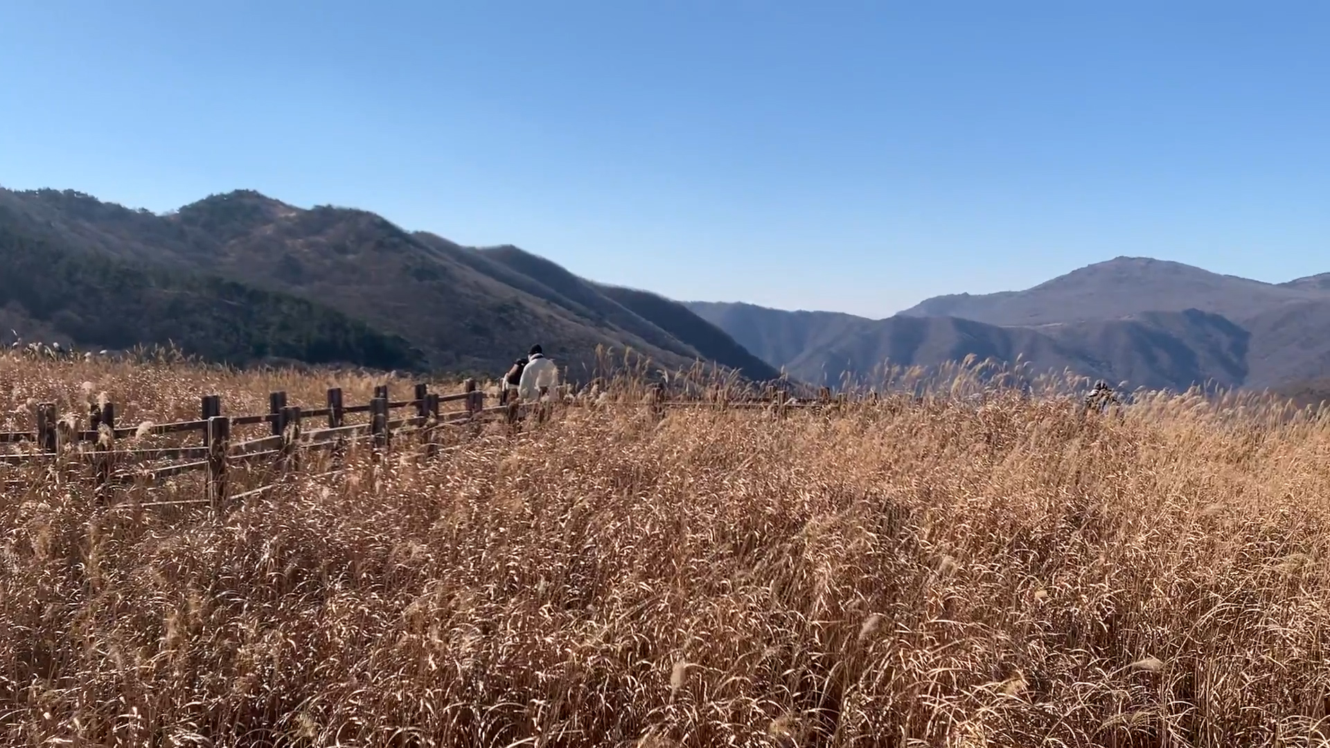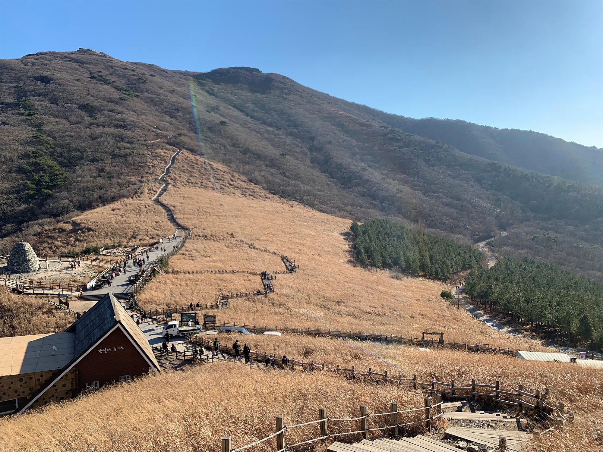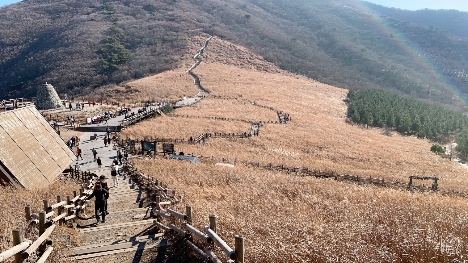 드디어 간월재가 보입니다. 멀리서 봐도 아름다운 갈대가 보입니다. 여기서 조금만 가면 왼쪽 편에 나무 계단으로 가면