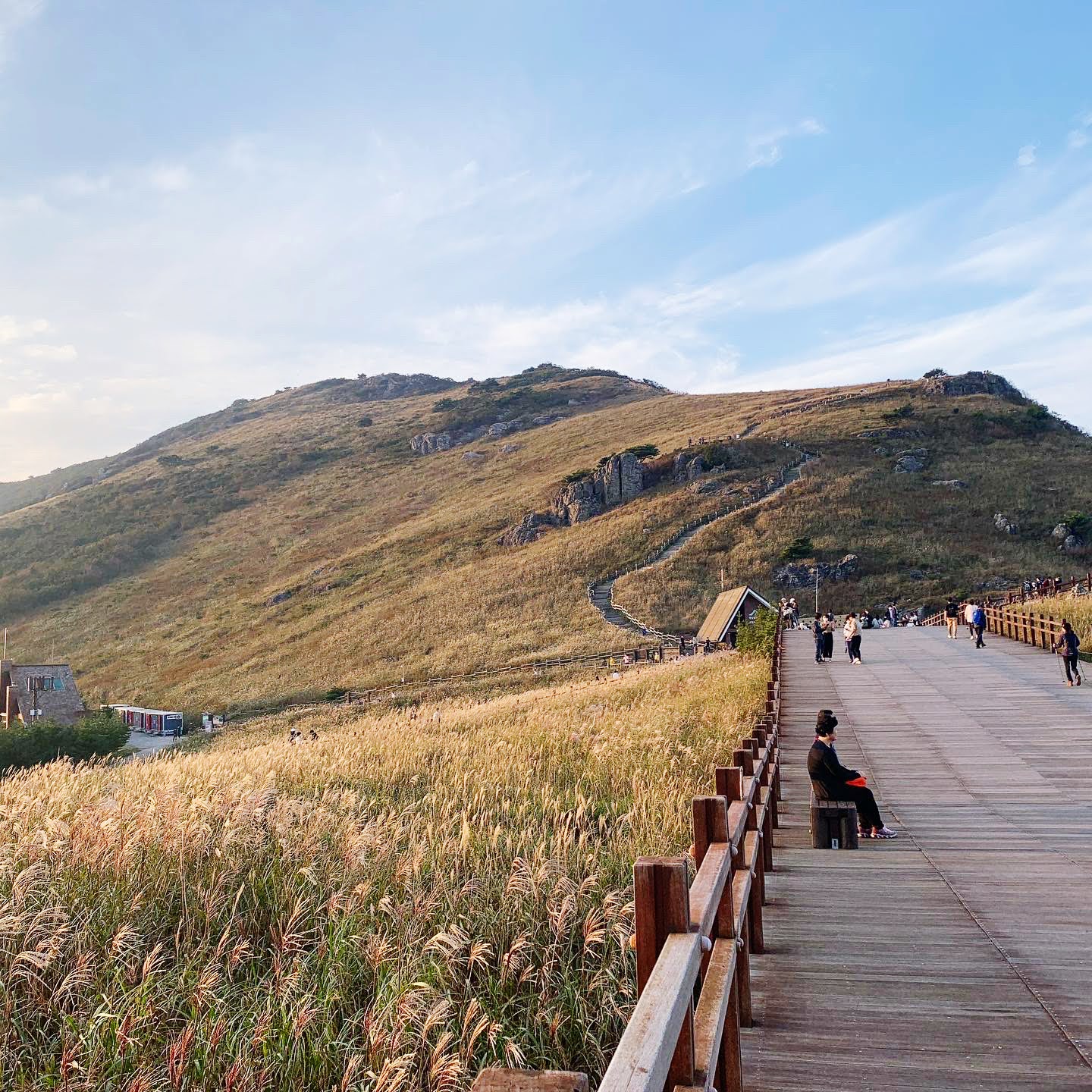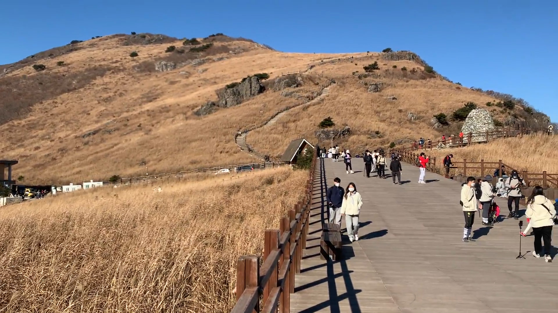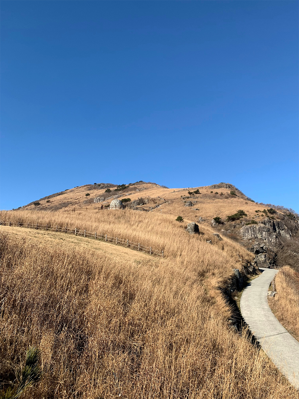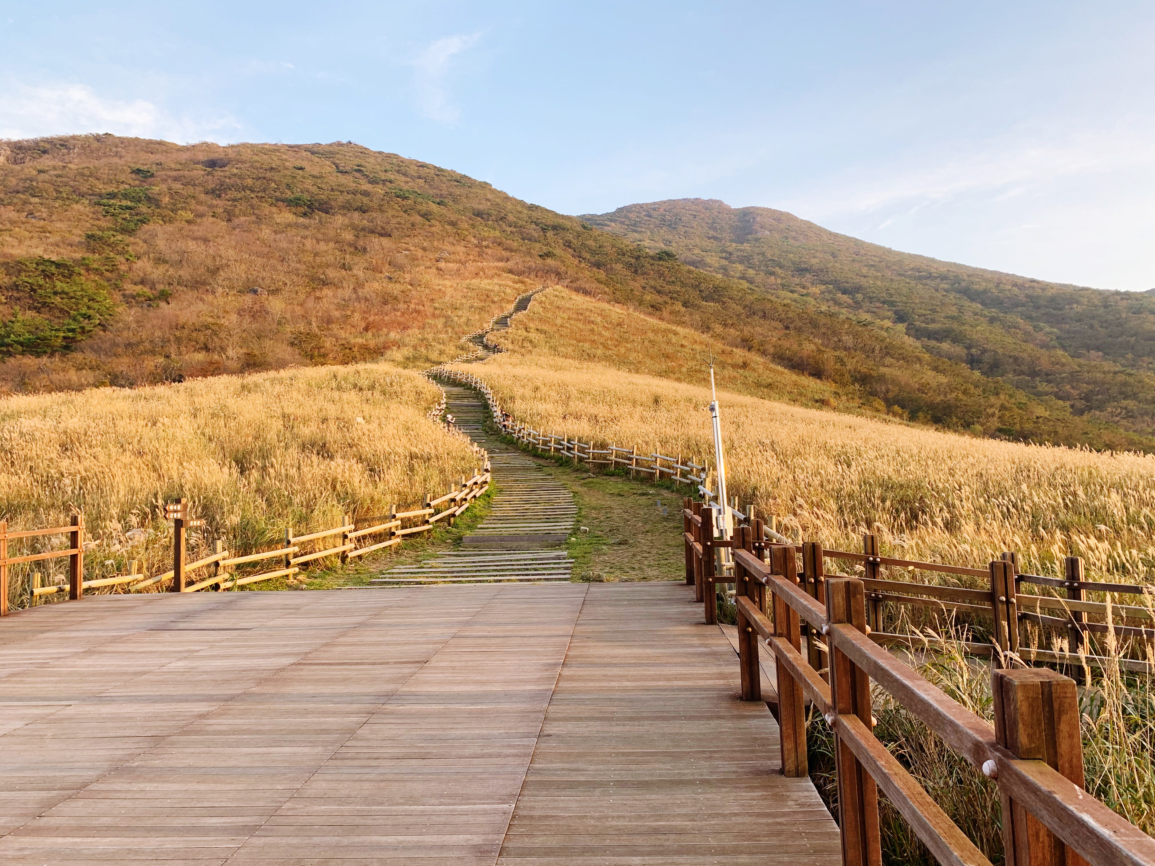 드디어 간월재가 보입니다. 멀리서 봐도 아름다운 갈대가 보입니다. 여기서 조금만 가면 왼쪽 편에 나무 계단으로 가면
