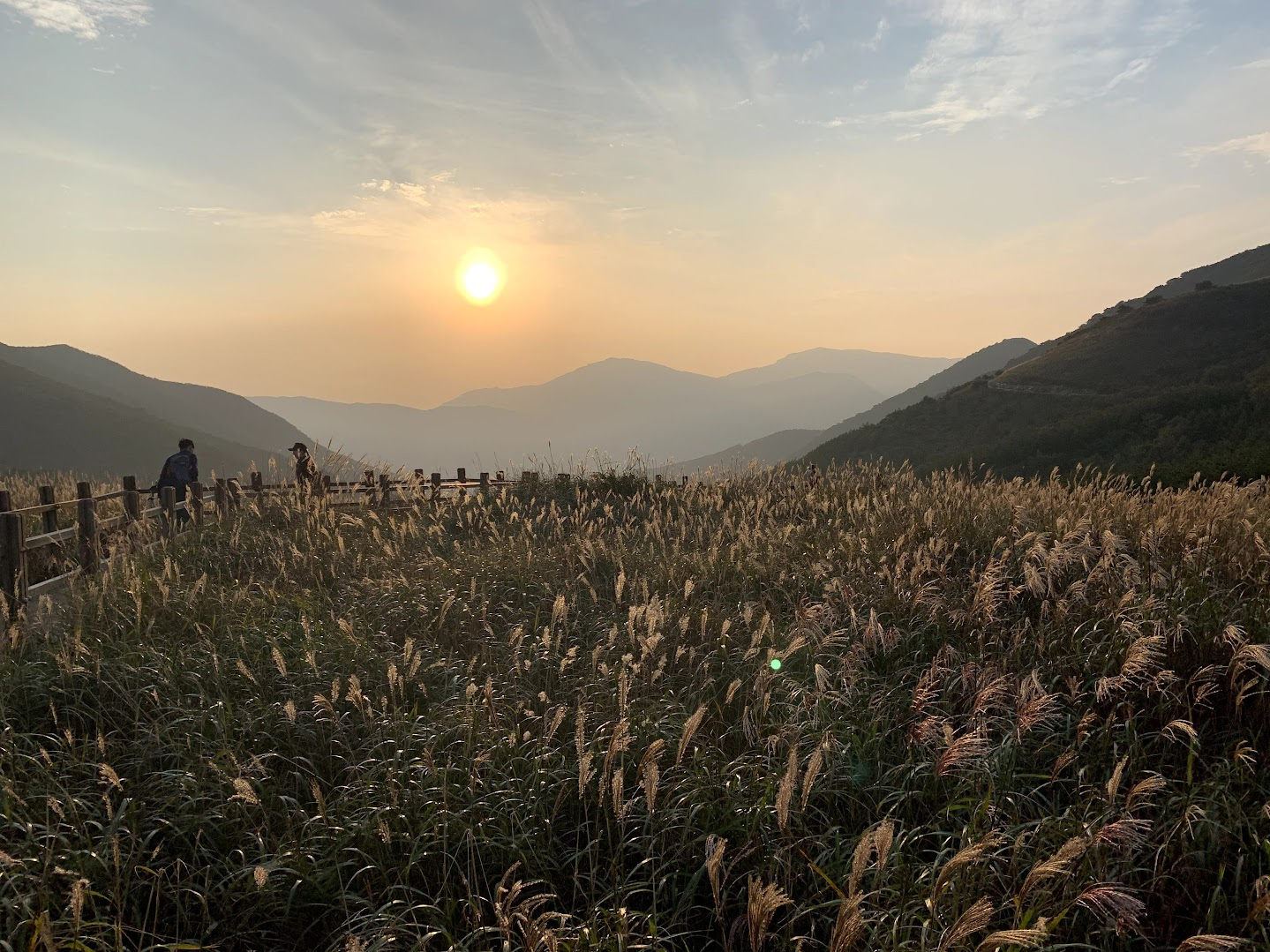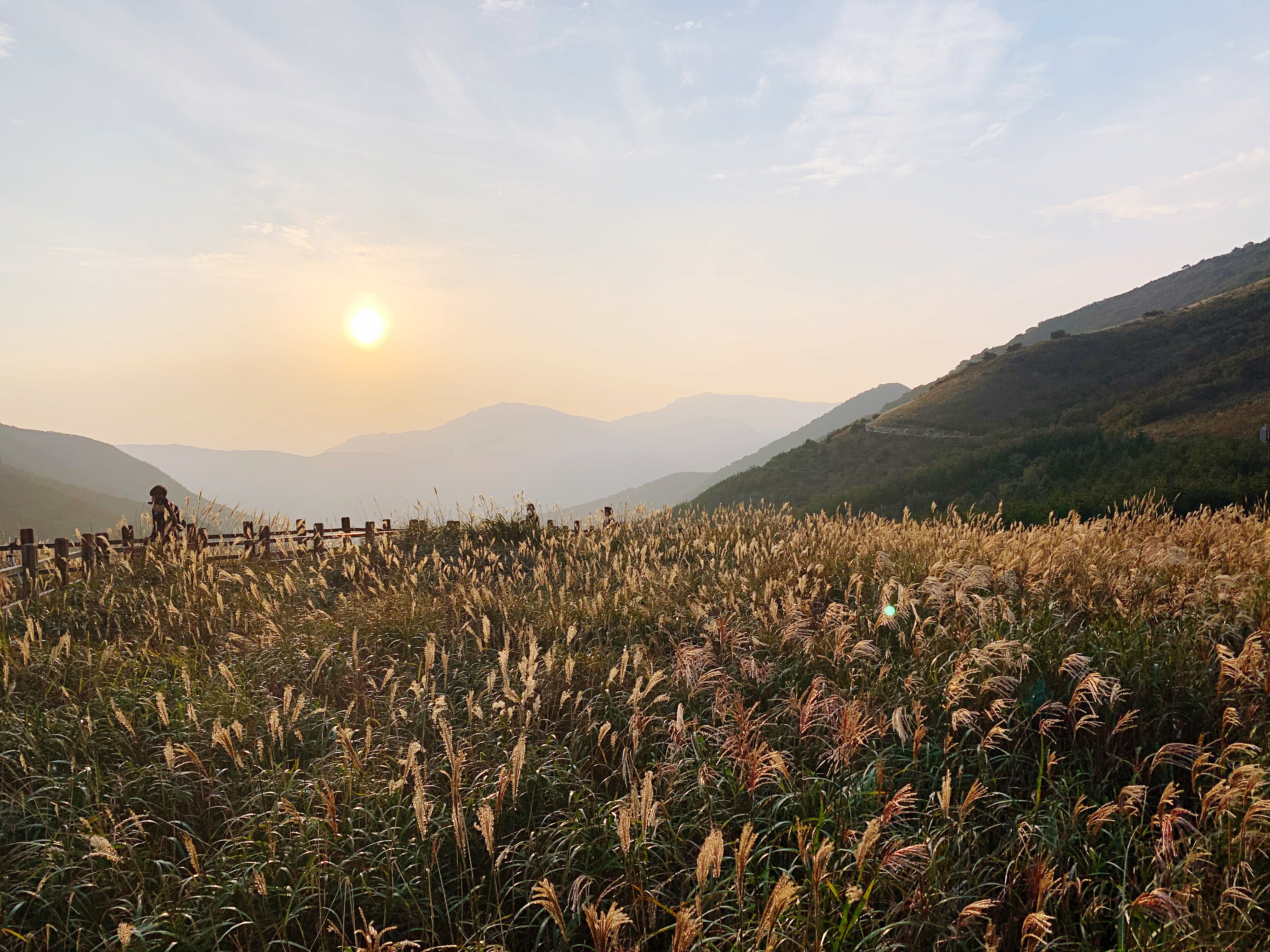 간월재는 노을이 아름다워요. 저녁에 노을에 갈대의 붉은 품 경은 너무 아름답습니다.