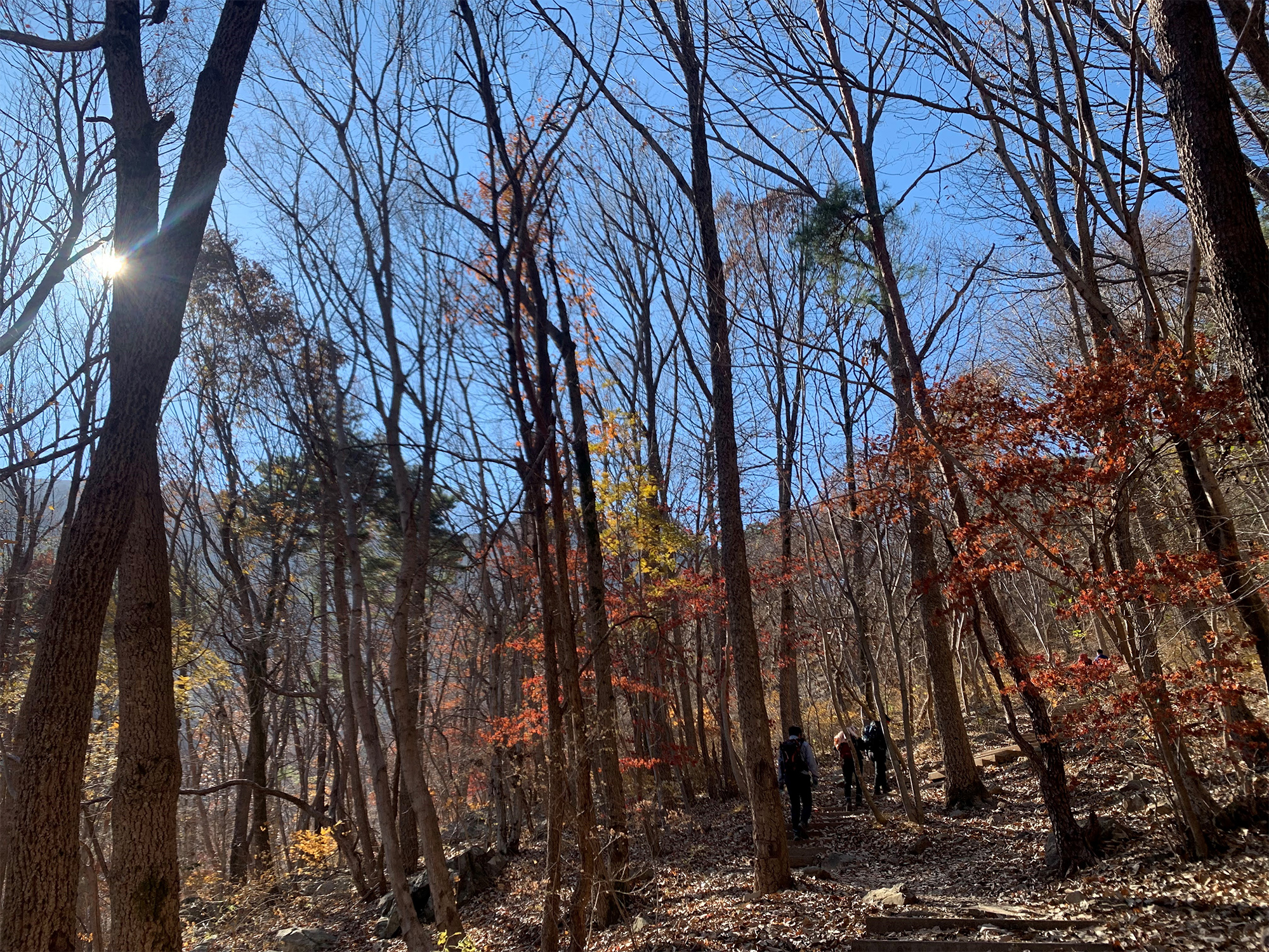 다소 경사가 있는 등산 코스입니다. 가을에는 낙엽으로 인해 다소 미끄러운 코스가 있으니