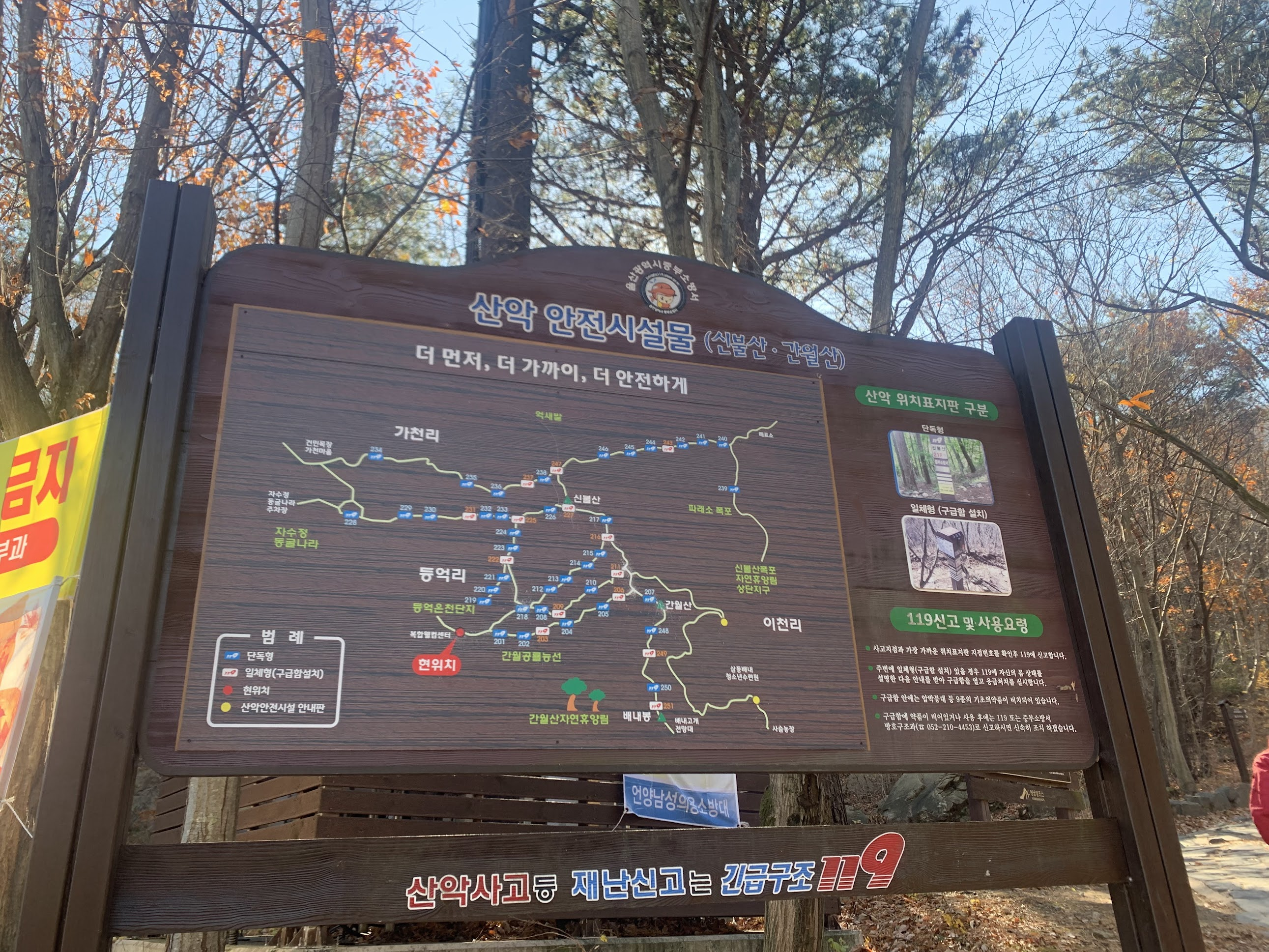 등산로 입구를 알리는 안내표