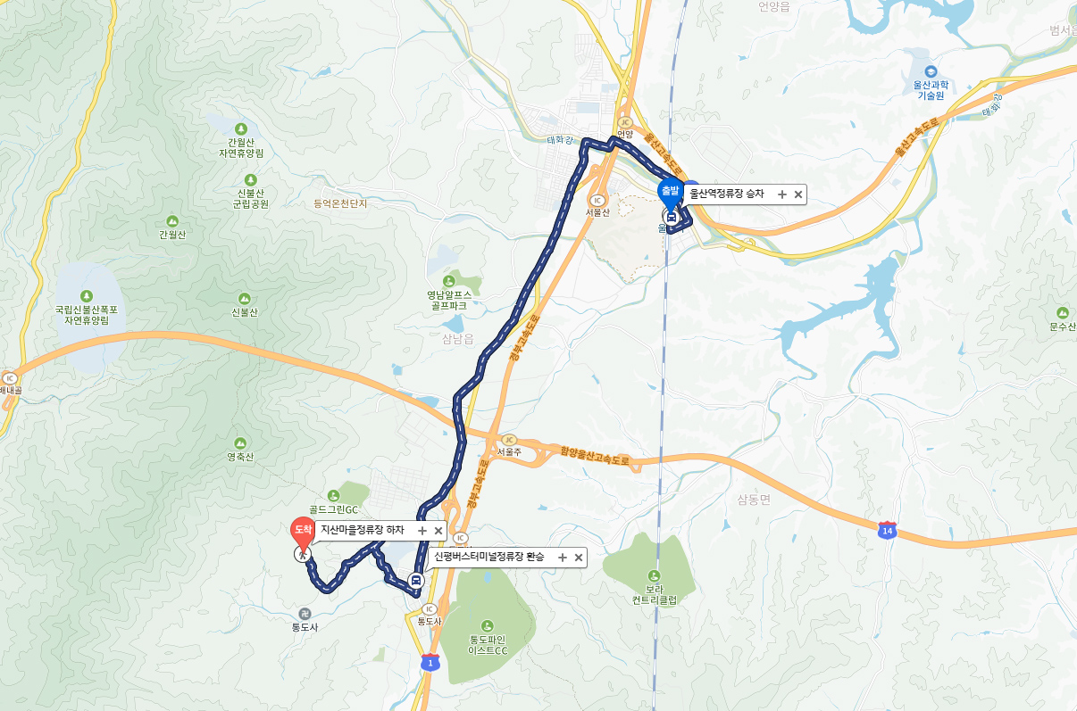 * 울산(통도사역)에서 택시를 탈 경우 약 14km(약 14,300원) 정도로 인원이 많을 경우 택시를 추천한다.