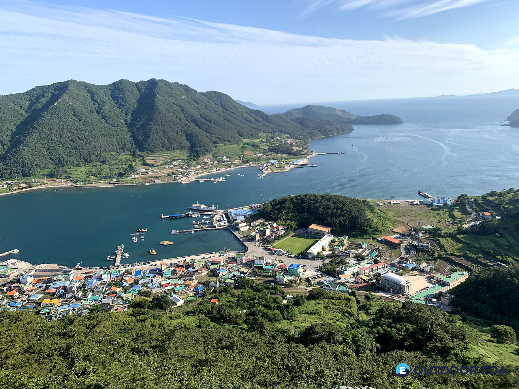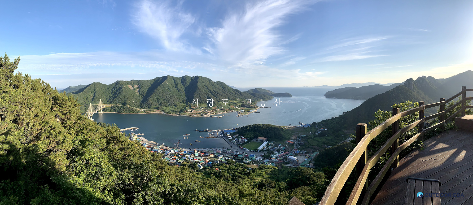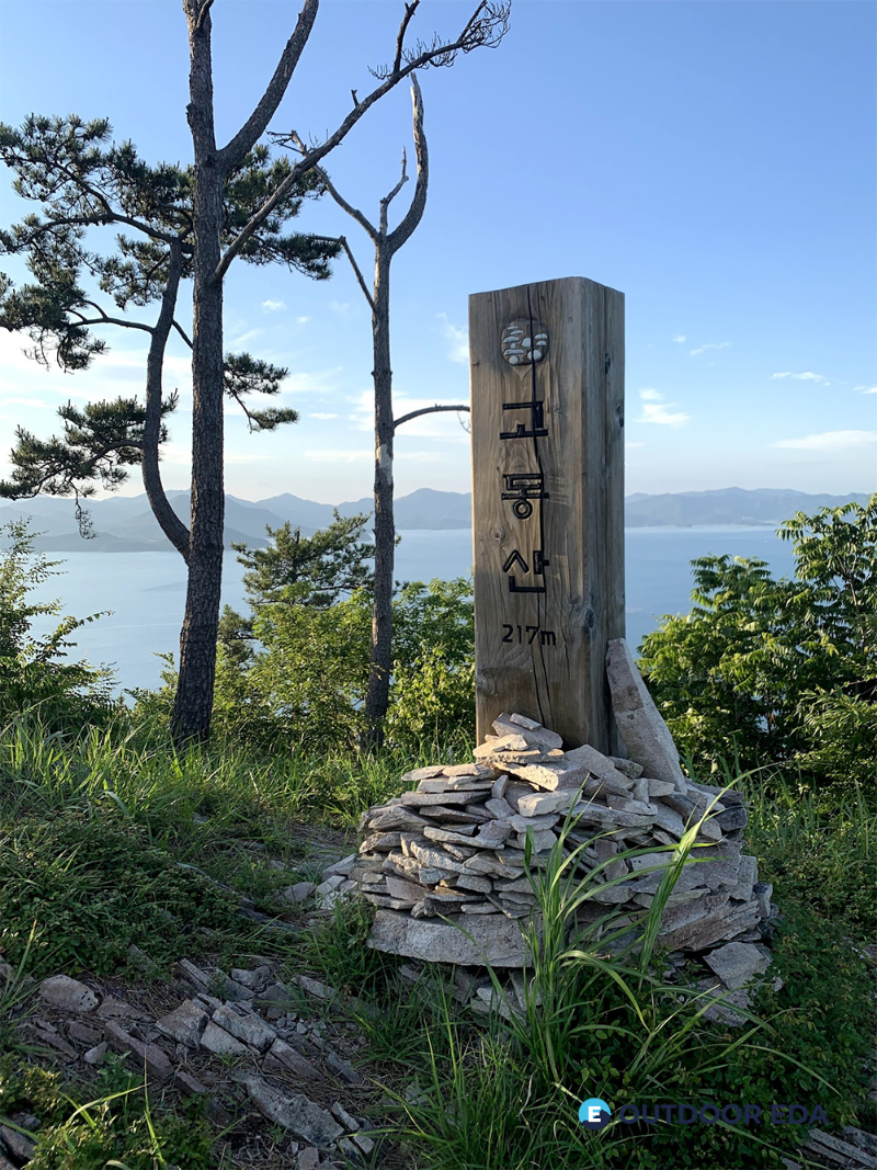 사량도는 사량대교를 기준으로 상도와 하도로 나줍니다. 배가 도착하는 상도 섬에 위치하고 있는 고동산은 해발 217m의 낮은 동래 뒷산정도의 높이입니다.
