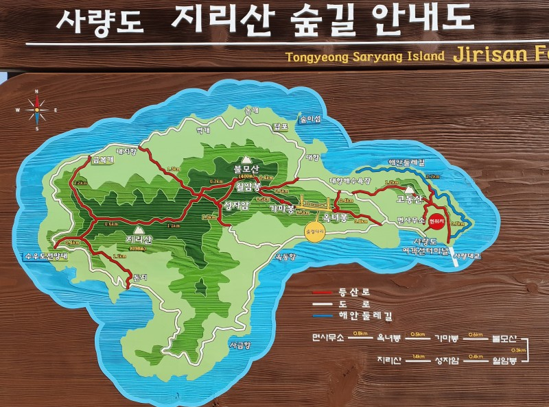 제가 다시 간다면 사량대교에서 가는 코스로 가거나 사량초등학교를 지나서 올라가는 코스를 선택할 것 같습니다.